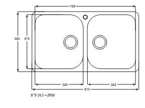 כיור מטבח גרניט כפול דגם צאלון חברת omega גודל חיצוני 81.5/46.5 ס"מ
