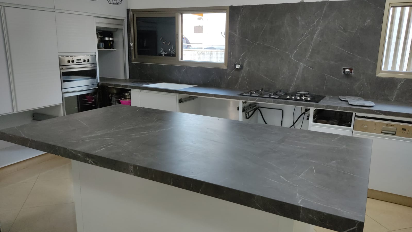 משטח שיש למטבח גרניט פורצלן דגם גריי סטון 8002 - משי